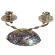 Made by the original Ataahua company in New Zealand, this two-branch candle holder is a mid 20th century piece of Kiwi souvenir kitsch. It has a paua base, which has been weighted and filled.  The candle holders are silver plated. They need some cleaning, and the decorative twist metal branches are plated on brass, which shows through on the edges. Would polish up more than I have achieved. Width of branches: 19.5 cm. Height overall: 12 cm. The base is 14 cm by 10 cm.  A great decorative piece - or ideal for the bach.