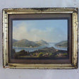Very attractive little painting of an Italian period river scene with hills, buildings and mountains in the background. Actual painting measures 12 cm wide by 8 cm deep (4.3/4 inches by 3.1/4 inches). Unknown dates, maybe late 19th to very early 20th century. Framed (later) in a gilded frame with brown matt. Frame has a few areas of wear (mainly in two corners). Painting is in excellent condition. The white marks and indistinct colour in part of the images is just reflection when trying to photograph the painting through the glass.
