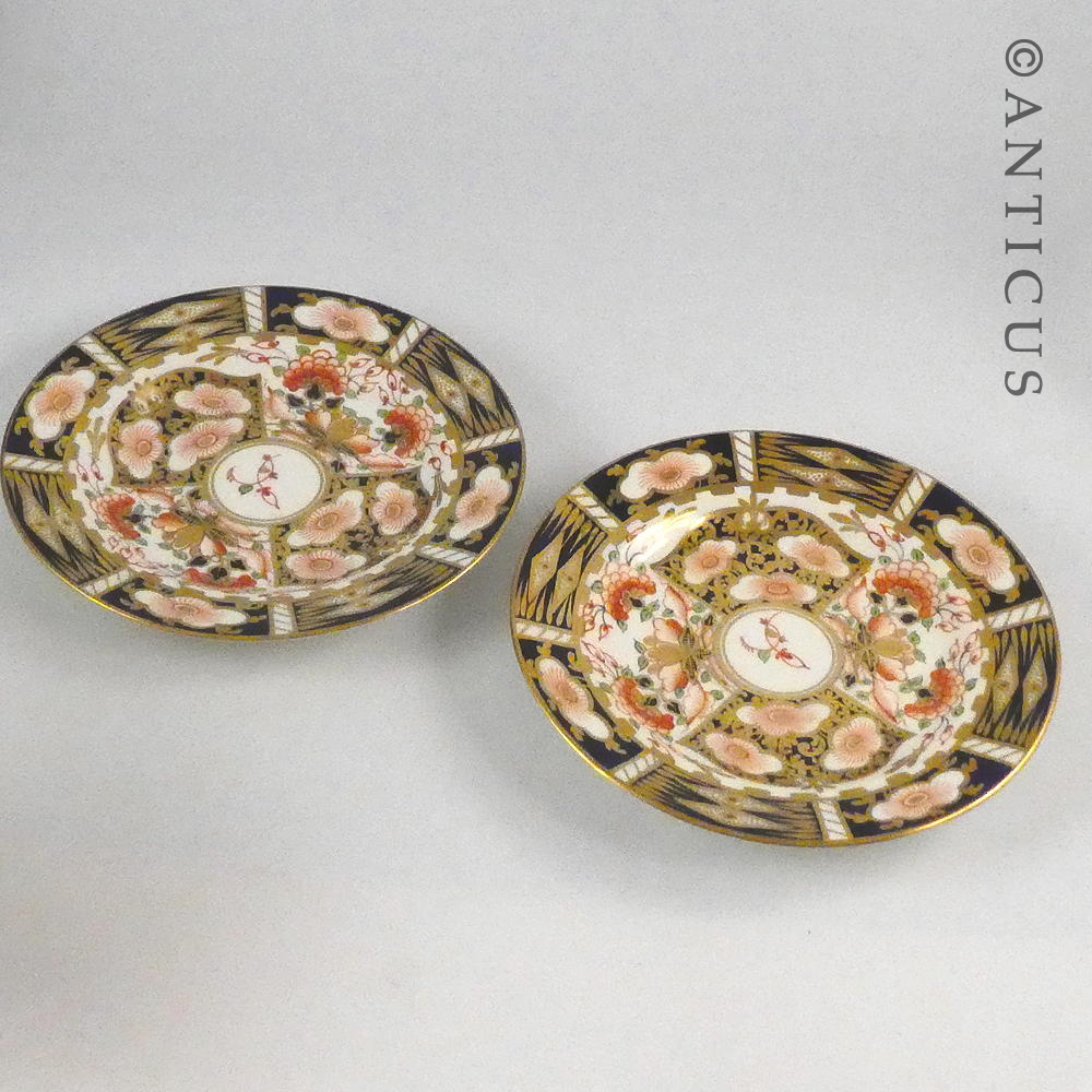 Pair of beautiful Imari colours antique Derby plates - the backstamp is the mark from the Stevenson & Hancock period, 1863 to 1866. Plates each measures 15.3 cm diameter. Excellent condition.