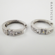 Huggie style small sterling silver loop earrings. Hallmark on the post. They have 5 cubic zirconia stones each, to look like diamonds. Very pretty earrings, quite discreet. External diameter is 1.5 cm. They date from late 20th to early 21st century. New old neglected stock. Some very small minor scuffs to side.