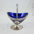 Sheffield Plate Sugar Basket with Blue Glass Liner.