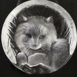 Hand made by Mats Jonasson in Sweden, this crystal paperweight is a beautiful rendition of a cat. Very detailed fur and wonderful expression. The design is worked through the front of the crystal. Paperweight has the original sticker, and measures 8.77 cm diameter and 2.9 cm high. Excellent condition, no damage at all.