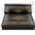 There are faults - front and one side of box has brass capping strip absent. There is an area of black lacquer missing from side edge of stationery section. One side of an inkwell stand is absent. A little of the ornate brass inlay to the top is lifting - nothing serious though. This brass inlay is not currently polished. Small blemished to top and lid surface. In spite of its faults, this is a beautiful, unusual box, very high class, and possibly from the British Raj period in India. Heavy item!