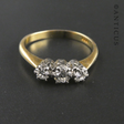 Trilogy ring (Past, Present and Future), made in 18ct yellow gold mounted with three diamonds. Centre stone is approx. 3.2 mm diameter, and the two side stones are about 2.5 mm diameter. Face of ring measures 11 mm wide by 4 mm.