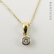 Pendant and chain - 18K gold, with small diamond. Pendant measures 10.95mm long including the bale. Diameter of diamond in setting is 4.39 mm. The 18ct gold chain is a very fine link Italian chain. It measures 400 mm long (40 cm). Very dainty necklace, excellent condition. Pre-owned, but probably contemporary. TW: 1.3g