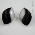 Black and White Art Glass Earrings, Silver Framed.