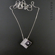 Diamond-Shaped Silver and Crystals Pendant on Chain.