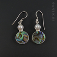 Drop Earrings, Silver, Pearl and Paua Shell.