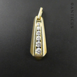 Gold plated on silver pendant, mounted with 6 graduated sparkling channel-set crystals. Item measures 3 cm long by just under 1 cm wide. Pre-owned, in excellent condition.