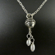 Long fine pull-over sterling silver chain necklace by Halia. Terminates in a silver ball with beading decoration, from which are suspended two small oval freshwater pearls. You can add any Halia charm to this necklace, or any other brand of charm. Just slide on over the doubled chain until it rests on the top of the silver ball. Total length of chain is 71.5 cm. Suspended ball and pearls are 3 cm long including the bale.