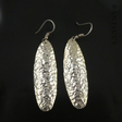 Sterling silver earrings, long oval convex shape, with hammered effect finish. Silver is 5 cm long by 1.7 cm wide. Drop from the ear is 6 cm. Excellent new condition. Made in South America.