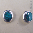 Oval sterling silver mount inset with turquoise. Face of earring measures 1.2 cm by 1 cm. Excellent new condition.