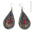 Pair Tibetan Style Earrings, Turquoise and Lapis.