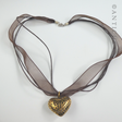 Polished Bronze Heart Pendant on Organza Ribbon.