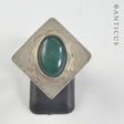New sterling silver ring with brushed-finish face set with a green agate. Adjustable band. Face of ring measures 25 mm by 25 mm (1 inch x 1 inch).