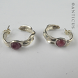 Sterling silver earrings - hoops with irregular twisty design to the silver. They are each mounted with a faceted pink ruby. Rubies are low-grade opaque decorative and a pretty colour. Hoops measure 2.3 cm wide. Excellent new condition.