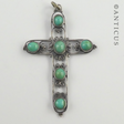 Silver Vintage Filigree Cross Pendant with Turquoises.