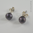Tiny black pearl earrings, sterling silver mounts and posts. Studs measure 6 mm diameter. Excellent new condition.