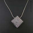 Lovely diamond-shaped pendant mounted with 42 little sparkling crystals. Measures 2.1 cm by 2.1 cm. Silver chain is a snake chain, 41 cm long. This item dates from circa 1990s to 2000. Pendant is in excellent condition, chain has a few marks so including it in the pendant price.