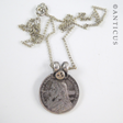 Silver shilling necklace - coin is mounted as a pendant and suspended on a fine chain. Coin measures 2.4 cm diameter. Coin and the suspension rings welded to it weigh 7.2 g. The chain is not hallmarked, looks as silver, but possibly is not. It is 41 cm long.  Coin shows some natural wear.