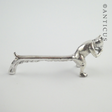Single silver plated antique knife-rest in the shape of a squirrel, eating what could be a nut, and the long tail is the rest for the knife blade so it won't dirty the tablecloth. Item measures 4 cm high by 9.7 cm long. One back leg has a repair, otherwise very good condition.