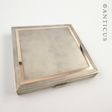 Sterling silver compact, hallmarked Birmingham, England, 1954. Maker’s mark is A & Co Ltd, for the prestigious company of Asprey & Co of New Bond Street, London. Engine-turned stipple pattern engraving to all case. Rose gold vermeil band around lid. Square, 7.1 cm by 7.1 cm and 1 cm thick. Hinged internal lid, mirror and powder section with gauze filter. The interior of the case (except the internal hinged lid) is gilded over silver. There is a mark on the inside of the internal lid caused by a long-gone powder puff decaying (probably had foam in it), which can cause staining. Overall very good condition, only fault being the mark of the puff. Item weighs 153.79 grams. (The black marks on the edges in the main image are just reflections from the roof).